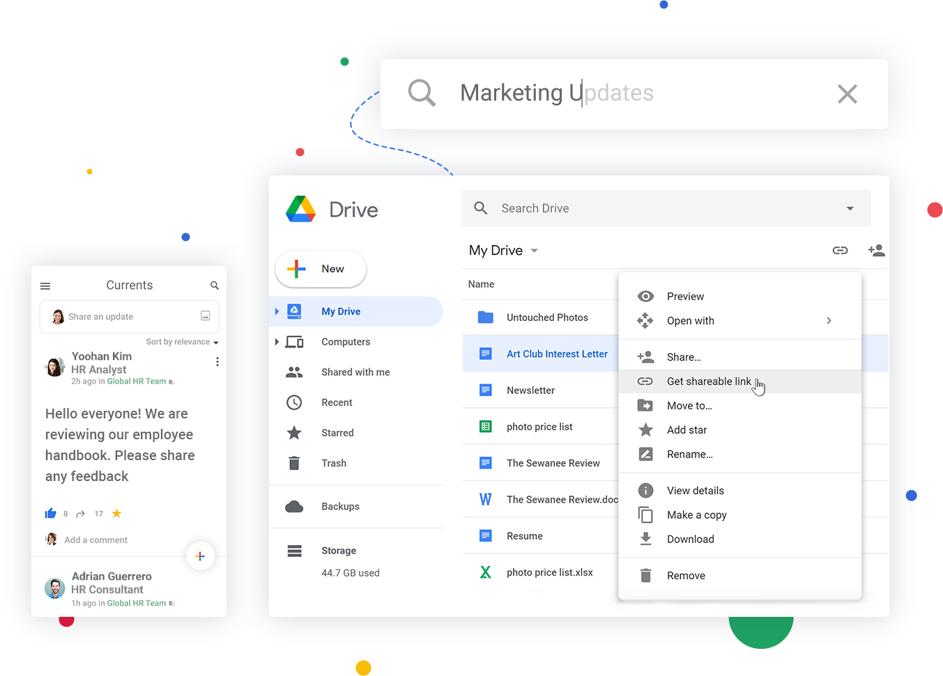 Boost productivity and collaboration with Gmail, Drive, Meet & more — all branded with your business domain and protected by Google-grade security