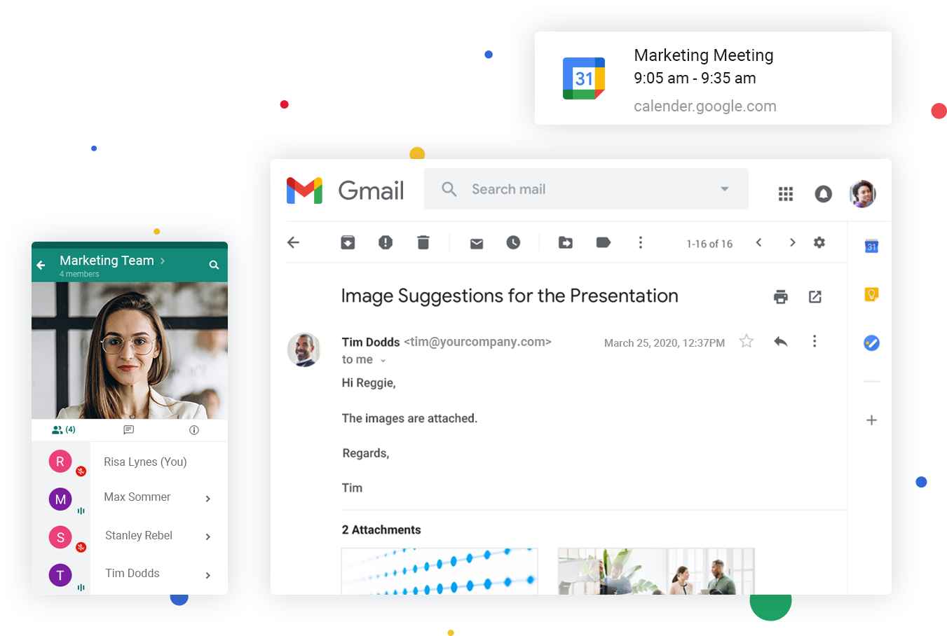 Yes. Google Workspace is designed as an all-in-one solution with integrated tools that work seamlessly together. For instance, you can receive a message in Gmail and instantly convert it into a Calendar event. When you make a comment in Docs, Sheets or Slides, collaborators automatically receive email alerts. With a single click, you can launch a Hangouts video meeting from your inbox or calendar. Using these tools as a complete package improves productivity while giving your business the most value. However, you are welcome to purchase the suite and only use the services of your choice.
