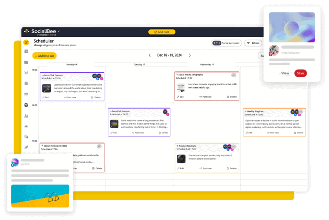 Scheduling, analytics, and post recycling—everything I needed is here. My audience engagement has doubled, and I spend less time posting manually. Kudos to Tech Guru Club for suggesting SocialBee!